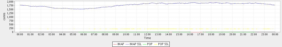 avg(IMAP) = 10.28 avg(IMAP SSL) = 1785.00 avg(POP) = 0.00 avg(POP SSL) = 207.23