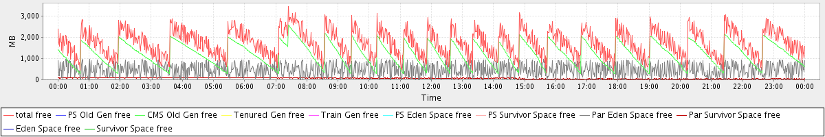 avg(total free) = 1746.60 avg(PS Old Gen free) = 0.00 avg(CMS Old Gen free) = 1204.04 avg(Tenured Gen free) = 0.00 avg(Train Gen free) = 0.00 avg(PS Eden Space free) = 0.00 avg(PS Survivor Space free) = 0.00 avg(Par Eden Space free) = 476.73 avg(Par Survivor Space free) = 65.82 avg(Eden Space free) = 0.00 avg(Survivor Space free) = 0.00