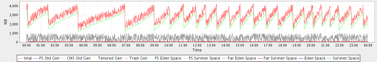 avg(total) = 2932.54 avg(PS Old Gen) = 0.00 avg(CMS Old Gen) = 2363.48 avg(Tenured Gen) = 0.00 avg(Train Gen) = 0.00 avg(PS Eden Space) = 0.00 avg(PS Survivor Space) = 0.00 avg(Par Eden Space) = 482.76 avg(Par Survivor Space) = 86.30 avg(Eden Space) = 0.00 avg(Survivor Space) = 0.00