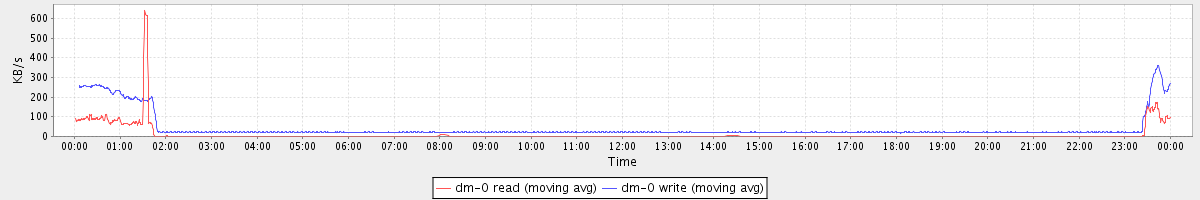 avg(dm-0 read) = 0.77 avg(dm-0 write) = 8.73