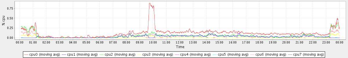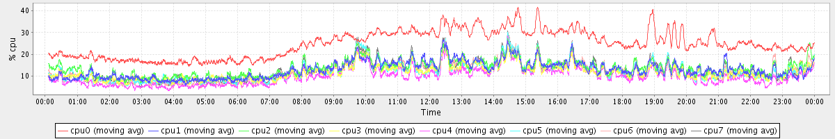 avg(cpu0) = 1.47 avg(cpu1) = 0.28 avg(cpu2) = 0.29 avg(cpu3) = 0.20 avg(cpu4) = 0.16 avg(cpu5) = 0.18 avg(cpu6) = 0.22 avg(cpu7) = 0.18