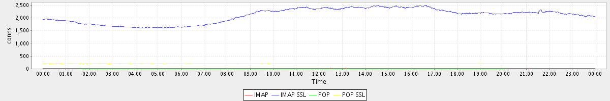 avg(IMAP) = 16.00 avg(IMAP SSL) = 2092.45 avg(POP) = 0.00 avg(POP SSL) = 213.54