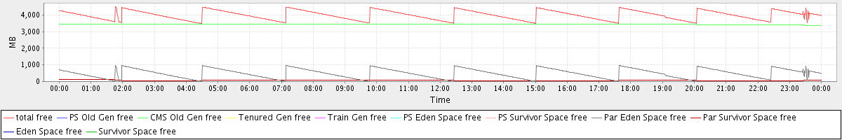 avg(total free) = 3985.47 avg(PS Old Gen free) = 0.00 avg(CMS Old Gen free) = 3439.92 avg(Tenured Gen free) = 0.00 avg(Train Gen free) = 0.00 avg(PS Eden Space free) = 0.00 avg(PS Survivor Space free) = 0.00 avg(Par Eden Space free) = 483.23 avg(Par Survivor Space free) = 62.32 avg(Eden Space free) = 0.00 avg(Survivor Space free) = 0.00