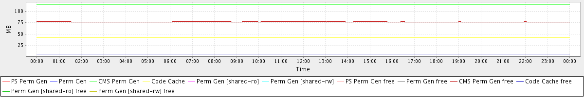 avg(PS Perm Gen) = 0.00 avg(Perm Gen) = 0.00 avg(CMS Perm Gen) = 114.99 avg(Code Cache) = 41.78 avg(Perm Gen [shared-ro]) = 0.00 avg(Perm Gen [shared-rw]) = 0.00 avg(PS Perm Gen free) = 0.00 avg(Perm Gen free) = 0.00 avg(CMS Perm Gen free) = 76.81 avg(Code Cache free) = 6.09 avg(Perm Gen [shared-ro] free) = 0.00 avg(Perm Gen [shared-rw] free) = 0.00