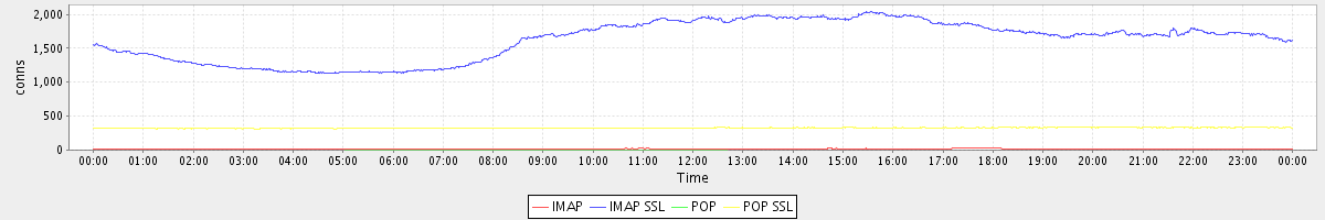 avg(IMAP) = 15.84 avg(IMAP SSL) = 1618.58 avg(POP) = 0.01 avg(POP SSL) = 326.06