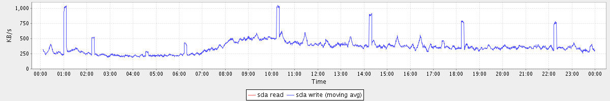 avg(sda1 read) = 0.00 avg(sda1 write) = 299.85