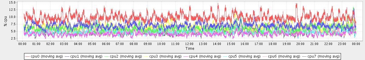 avg(cpu0) = 0.99 avg(cpu1) = 0.78 avg(cpu2) = 0.68 avg(cpu3) = 0.68 avg(cpu4) = 0.46 avg(cpu5) = 0.44 avg(cpu6) = 0.36 avg(cpu7) = 0.31