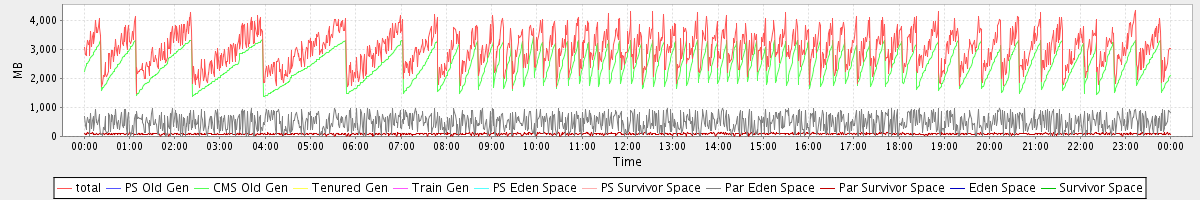 avg(total) = 3014.83 avg(PS Old Gen) = 0.00 avg(CMS Old Gen) = 2441.51 avg(Tenured Gen) = 0.00 avg(Train Gen) = 0.00 avg(PS Eden Space) = 0.00 avg(PS Survivor Space) = 0.00 avg(Par Eden Space) = 485.64 avg(Par Survivor Space) = 87.67 avg(Eden Space) = 0.00 avg(Survivor Space) = 0.00