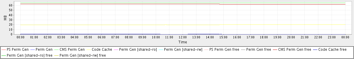 avg(PS Perm Gen) = 0.00 avg(Perm Gen) = 0.00 avg(CMS Perm Gen) = 65.33 avg(Code Cache) = 19.82 avg(Perm Gen [shared-ro]) = 0.00 avg(Perm Gen [shared-rw]) = 0.00 avg(PS Perm Gen free) = 0.00 avg(Perm Gen free) = 0.00 avg(CMS Perm Gen free) = 62.67 avg(Code Cache free) = 0.35 avg(Perm Gen [shared-ro] free) = 0.00 avg(Perm Gen [shared-rw] free) = 0.00
