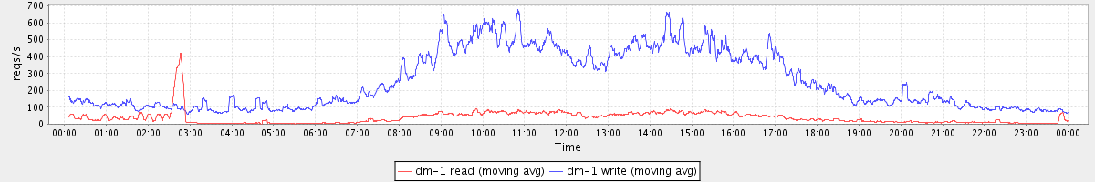 avg(dm-0 read) = 1286.17 avg(dm-0 write) = 363.65