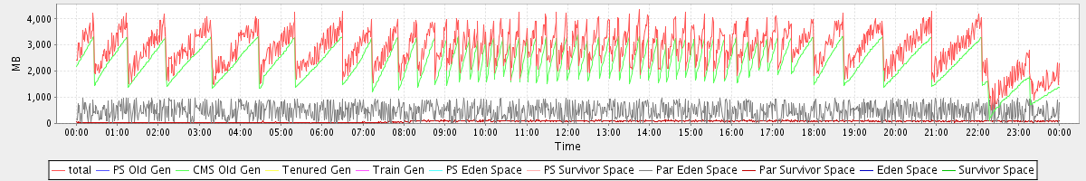 avg(total free) = 1845.88 avg(PS Old Gen free) = 0.00 avg(CMS Old Gen free) = 1313.33 avg(Tenured Gen free) = 0.00 avg(Train Gen free) = 0.00 avg(PS Eden Space free) = 0.00 avg(PS Survivor Space free) = 0.00 avg(Par Eden Space free) = 484.97 avg(Par Survivor Space free) = 47.58 avg(Eden Space free) = 0.00 avg(Survivor Space free) = 0.00