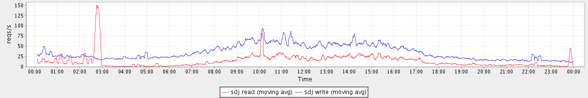 avg(sda read) = 24.10 avg(sda write) = 60.45