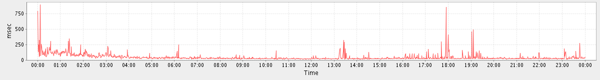 avg(SendMsgRequest) = 341.32 avg(DeleteAccountRequest) = 183481.00 avg(BackupQueryRequest) = 378.60 avg(GetFreeBusyRequest) = 820.50 avg(CheckRecurConflictsRequest) = 614.00 avg(SendInviteReplyRequest) = 304.50 avg(AutoCompleteRequest) = 509.24 avg(FolderActionRequest.empty) = 5302.65 avg(BackupRequest) = 6535.50 avg(GetQuotaUsageRequest) = 1466.00