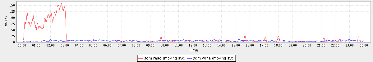 avg(sda read) = 0.88 avg(sda write) = 2.86