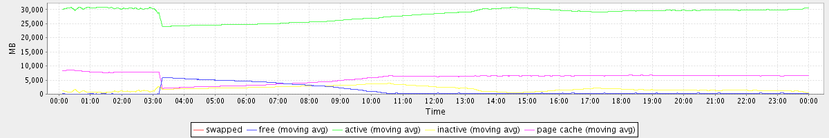 avg(swapped) = 0.00 avg(free) = 1272.61 avg(active) = 28375.57 avg(inactive) = 1833.59 avg(page cache) = 5866.33
