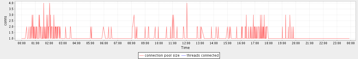 avg(connection pool size) = 0.57 avg(threads connected) = 0.00