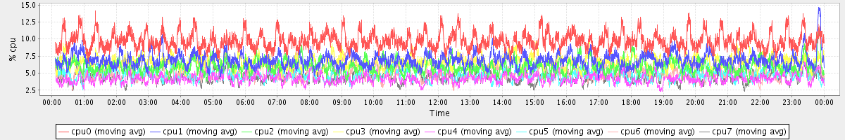 avg(cpu0) = 1.01 avg(cpu1) = 0.78 avg(cpu2) = 0.68 avg(cpu3) = 0.69 avg(cpu4) = 0.46 avg(cpu5) = 0.45 avg(cpu6) = 0.37 avg(cpu7) = 0.32