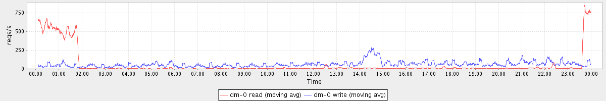 avg(dm-1 read) = 197.14 avg(dm-1 write) = 691.77