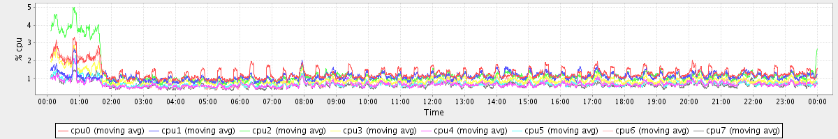avg(cpu0) = 0.07 avg(cpu1) = 0.01 avg(cpu2) = 0.03 avg(cpu3) = 0.00 avg(cpu4) = 0.00 avg(cpu5) = 0.00 avg(cpu6) = 0.02 avg(cpu7) = 0.00