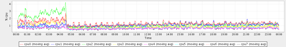 avg(cpu0) = 0.09 avg(cpu1) = 0.01 avg(cpu2) = 0.04 avg(cpu3) = 0.01 avg(cpu4) = 0.00 avg(cpu5) = 0.00 avg(cpu6) = 0.02 avg(cpu7) = 0.00