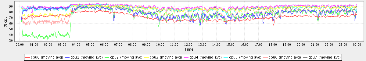 avg(cpu0) = 71.57 avg(cpu1) = 78.77 avg(cpu2) = 72.36 avg(cpu3) = 85.09 avg(cpu4) = 89.64 avg(cpu5) = 86.90 avg(cpu6) = 77.25 avg(cpu7) = 87.25
