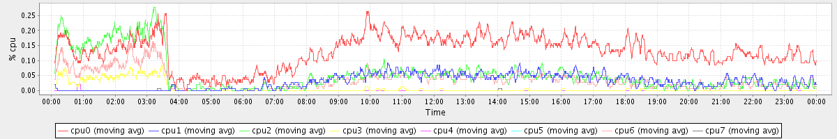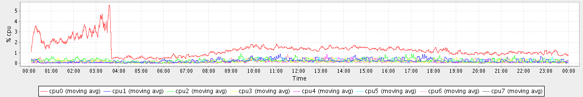 avg(cpu0) = 0.13 avg(cpu1) = 0.03 avg(cpu2) = 0.05 avg(cpu3) = 0.01 avg(cpu4) = 0.00 avg(cpu5) = 0.00 avg(cpu6) = 0.04 avg(cpu7) = 0.00