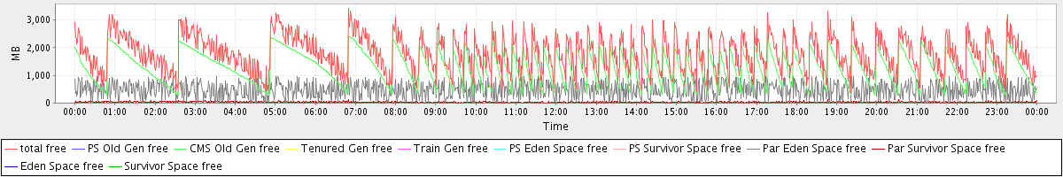 avg(total free) = 1792.44 avg(PS Old Gen free) = 0.00 avg(CMS Old Gen free) = 1279.33 avg(Tenured Gen free) = 0.00 avg(Train Gen free) = 0.00 avg(PS Eden Space free) = 0.00 avg(PS Survivor Space free) = 0.00 avg(Par Eden Space free) = 480.77 avg(Par Survivor Space free) = 32.34 avg(Eden Space free) = 0.00 avg(Survivor Space free) = 0.00