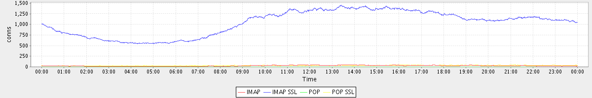 avg(IMAP) = 24.73 avg(IMAP SSL) = 1034.66 avg(POP) = 0.05 avg(POP SSL) = 32.29