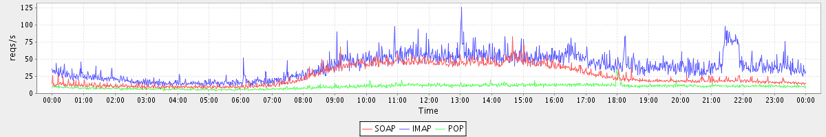 Host zm06.stanford.edu: Mailboxd: Request Rate by Client Protocol
