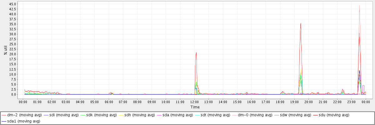 avg(dm-2) = 0.90 avg(sdi) = 0.09 avg(sdk) = 0.22 avg(sdh) = 0.25 avg(sda) = 0.08 avg(sdt) = 0.22 avg(dm-0) = 0.29 avg(sdw) = 0.24 avg(sdu) = 0.07 avg(sda1) = 0.08