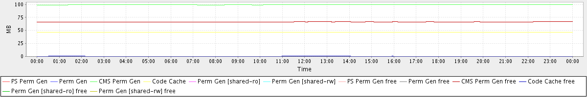 avg(PS Perm Gen) = 0.00 avg(Perm Gen) = 0.00 avg(CMS Perm Gen) = 99.38 avg(Code Cache) = 46.45 avg(Perm Gen [shared-ro]) = 0.00 avg(Perm Gen [shared-rw]) = 0.00 avg(PS Perm Gen free) = 0.00 avg(Perm Gen free) = 0.00 avg(CMS Perm Gen free) = 66.34 avg(Code Cache free) = 0.42 avg(Perm Gen [shared-ro] free) = 0.00 avg(Perm Gen [shared-rw] free) = 0.00