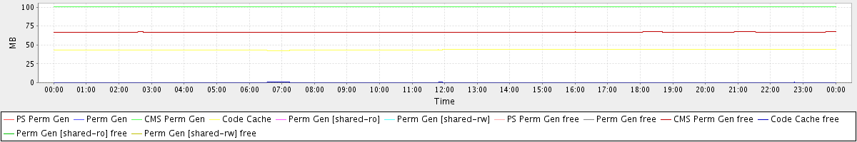 avg(PS Perm Gen) = 0.00 avg(Perm Gen) = 0.00 avg(CMS Perm Gen) = 100.55 avg(Code Cache) = 43.62 avg(Perm Gen [shared-ro]) = 0.00 avg(Perm Gen [shared-rw]) = 0.00 avg(PS Perm Gen free) = 0.00 avg(Perm Gen free) = 0.00 avg(CMS Perm Gen free) = 67.15 avg(Code Cache free) = 0.34 avg(Perm Gen [shared-ro] free) = 0.00 avg(Perm Gen [shared-rw] free) = 0.00
