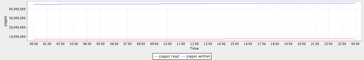 avg(pages read) = 7361378.67 avg(pages written) = 45817187.46