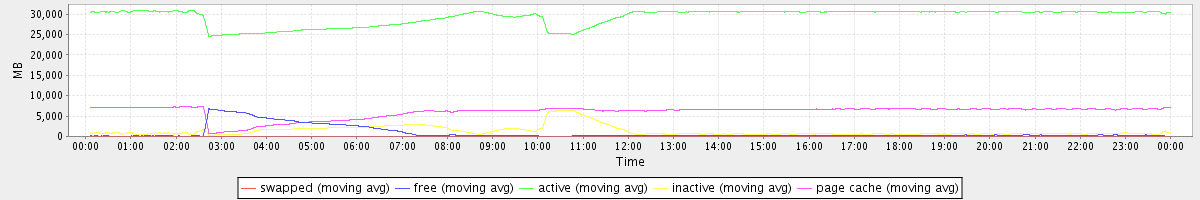 avg(swapped) = 0.23 avg(free) = 850.10 avg(active) = 29295.86 avg(inactive) = 1300.39 avg(page cache) = 6033.21