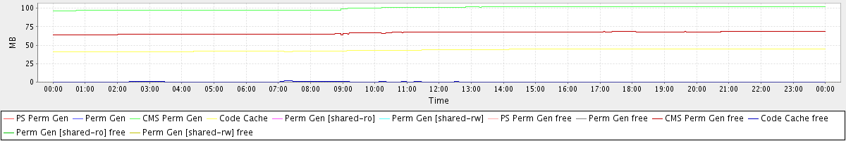 avg(PS Perm Gen) = 0.00 avg(Perm Gen) = 0.00 avg(CMS Perm Gen) = 100.18 avg(Code Cache) = 43.29 avg(Perm Gen [shared-ro]) = 0.00 avg(Perm Gen [shared-rw]) = 0.00 avg(PS Perm Gen free) = 0.00 avg(Perm Gen free) = 0.00 avg(CMS Perm Gen free) = 66.73 avg(Code Cache free) = 0.42 avg(Perm Gen [shared-ro] free) = 0.00 avg(Perm Gen [shared-rw] free) = 0.00