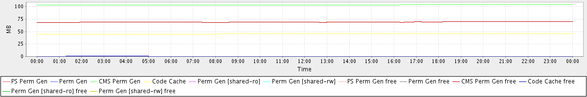 avg(PS Perm Gen) = 0.00 avg(Perm Gen) = 0.00 avg(CMS Perm Gen) = 103.34 avg(Code Cache) = 45.51 avg(Perm Gen [shared-ro]) = 0.00 avg(Perm Gen [shared-rw]) = 0.00 avg(PS Perm Gen free) = 0.00 avg(Perm Gen free) = 0.00 avg(CMS Perm Gen free) = 68.99 avg(Code Cache free) = 0.37 avg(Perm Gen [shared-ro] free) = 0.00 avg(Perm Gen [shared-rw] free) = 0.00