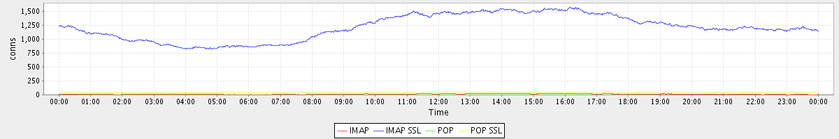avg(IMAP) = 12.19 avg(IMAP SSL) = 1212.91 avg(POP) = 0.03 avg(POP SSL) = 47.31