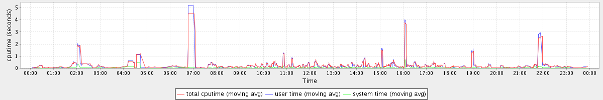 avg(total cputime) = 0.13 avg(user time) = 0.12 avg(system time) = 0.01