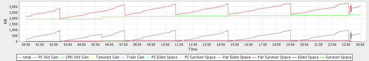 avg(total) = 2678.76 avg(PS Old Gen) = 0.00 avg(CMS Old Gen) = 2141.48 avg(Tenured Gen) = 0.00 avg(Train Gen) = 0.00 avg(PS Eden Space) = 0.00 avg(PS Survivor Space) = 0.00 avg(Par Eden Space) = 458.90 avg(Par Survivor Space) = 78.38 avg(Eden Space) = 0.00 avg(Survivor Space) = 0.00