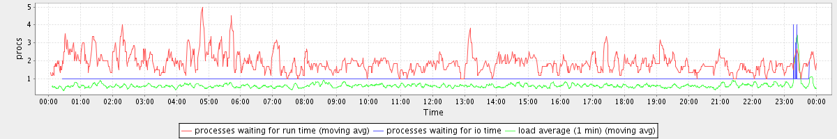 avg(processes waiting for run time) = 0.78 avg(processes waiting for io time) = 0.02 avg(load average (1 min)) = 0.62