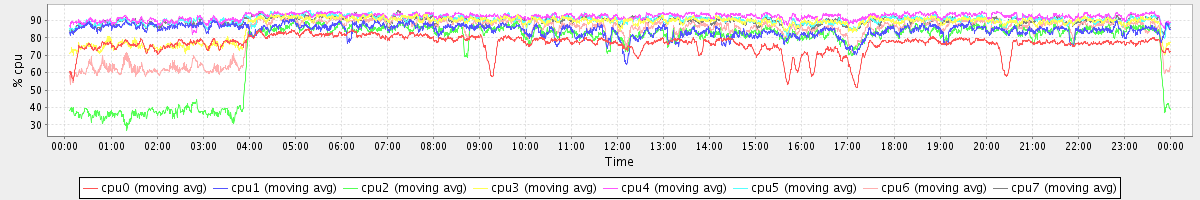avg(cpu0) = 76.64 avg(cpu1) = 84.32 avg(cpu2) = 75.40 avg(cpu3) = 87.52 avg(cpu4) = 92.18 avg(cpu5) = 90.47 avg(cpu6) = 82.76 avg(cpu7) = 89.85