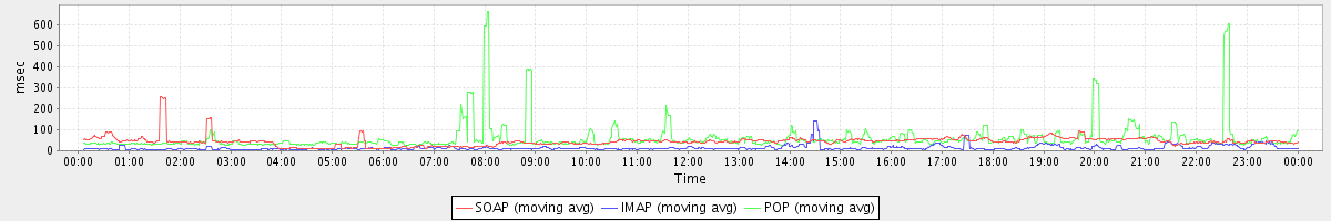 avg(IMAP) = 9.76 avg(IMAP SSL) = 1179.10 avg(POP) = 0.00 avg(POP SSL) = 57.28