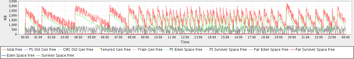 avg(total free) = 1754.66 avg(PS Old Gen free) = 0.00 avg(CMS Old Gen free) = 1220.84 avg(Tenured Gen free) = 0.00 avg(Train Gen free) = 0.00 avg(PS Eden Space free) = 0.00 avg(PS Survivor Space free) = 0.00 avg(Par Eden Space free) = 488.15 avg(Par Survivor Space free) = 45.66 avg(Eden Space free) = 0.00 avg(Survivor Space free) = 0.00