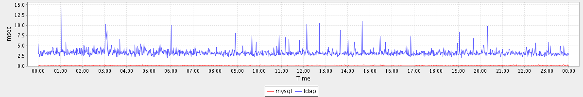 avg(mysql) = 0.19 avg(ldap) = 3.35