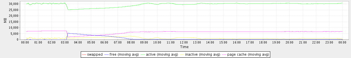 avg(swapped) = 0.00 avg(free) = 785.86 avg(active) = 29454.35 avg(inactive) = 1202.30 avg(page cache) = 6151.15
