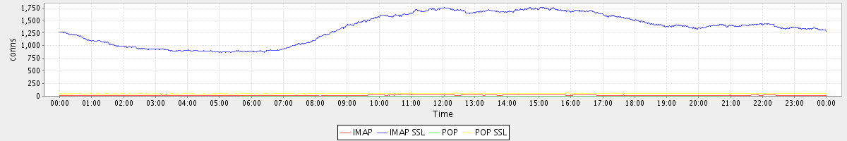 avg(IMAP) = 17.33 avg(IMAP SSL) = 1343.25 avg(POP) = 0.00 avg(POP SSL) = 53.24