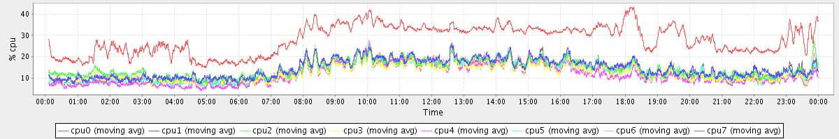 avg(cpu0) = 1.57 avg(cpu1) = 0.36 avg(cpu2) = 0.38 avg(cpu3) = 0.24 avg(cpu4) = 0.20 avg(cpu5) = 0.21 avg(cpu6) = 0.29 avg(cpu7) = 0.21