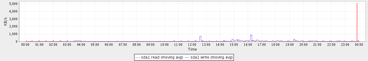 avg(sda1 read) = 23.65 avg(sda1 write) = 62.80