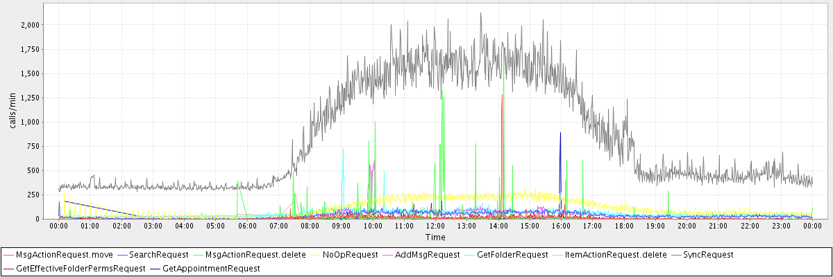 max(MsgActionRequest.move) = 1282.00 max(SearchRequest) = 179.00 max(MsgActionRequest.delete) = 1799.00 max(NoOpRequest) = 322.00 max(AddMsgRequest) = 604.00 max(GetFolderRequest) = 724.00 max(ItemActionRequest.delete) = 254.00 max(SyncRequest) = 2122.00 max(GetEffectiveFolderPermsRequest) = 167.00 max(GetAppointmentRequest) = 893.00
