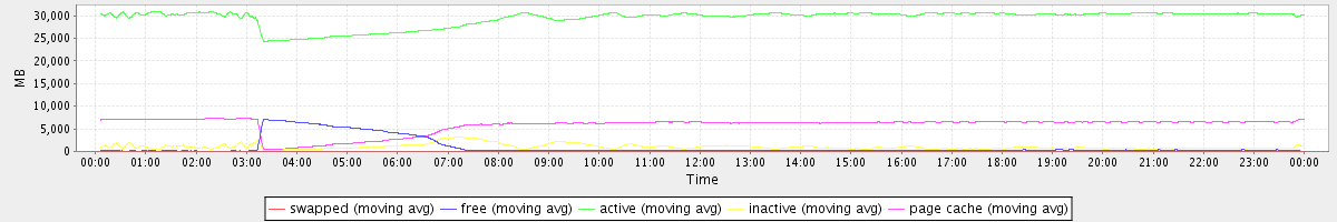 avg(swapped) = 0.23 avg(free) = 941.57 avg(active) = 29437.16 avg(inactive) = 1013.82 avg(page cache) = 5816.34